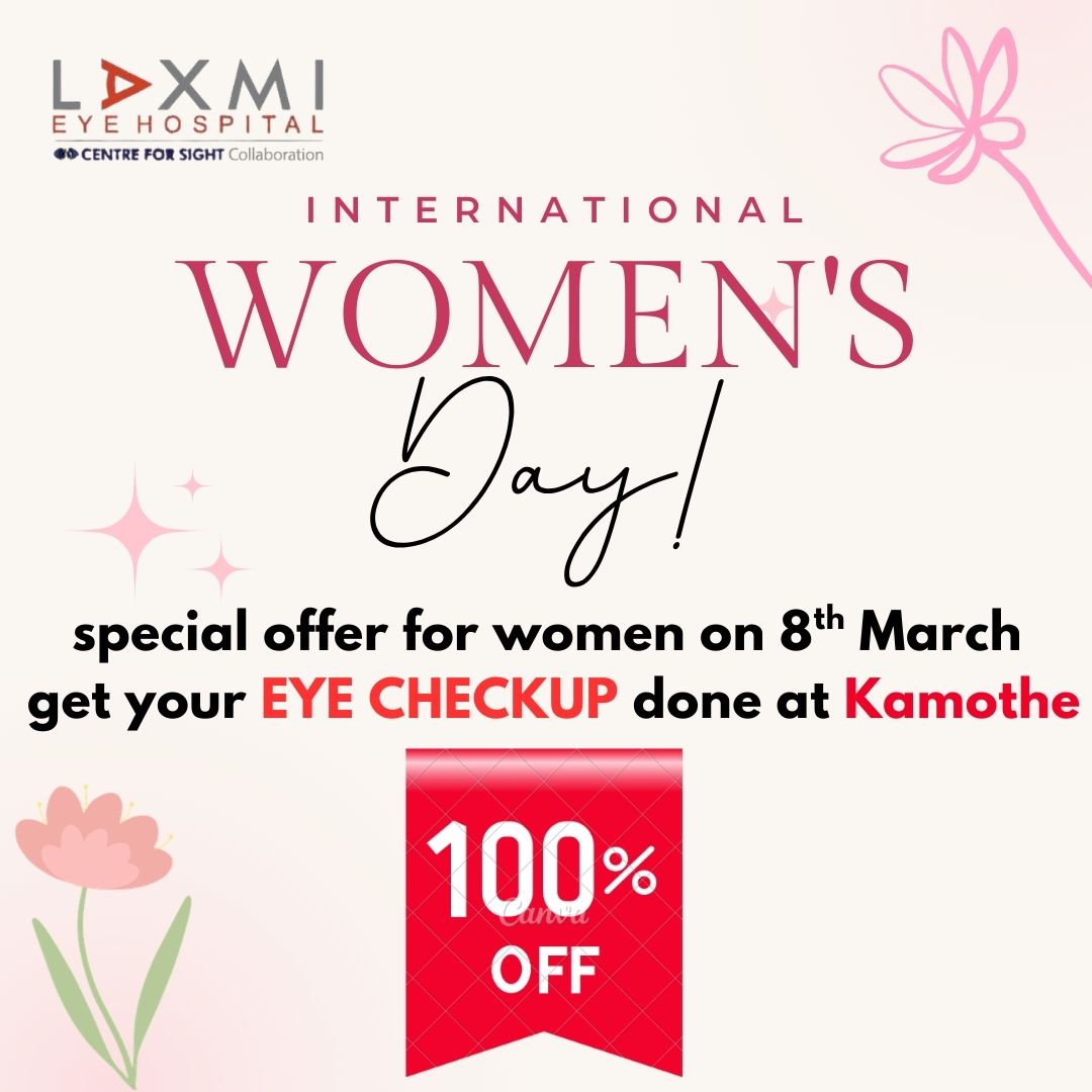 In honor of Women's Day on 8th March, we are offering exclusive discounts on eye checkups at our clinics in Panvel and Kamothe.